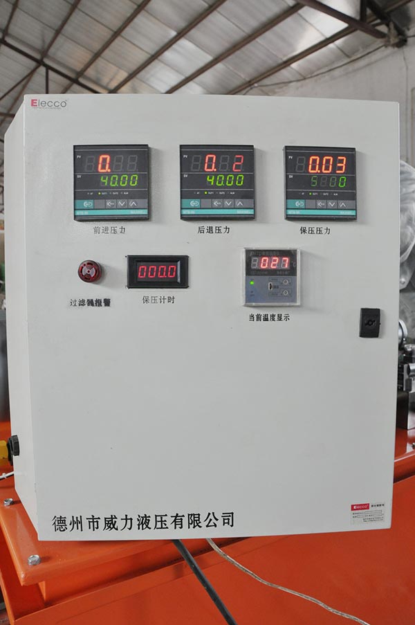 系統(tǒng)的電控部分,可顯示系統(tǒng)當(dāng)前壓力,液壓油當(dāng)前溫度以及保壓計時